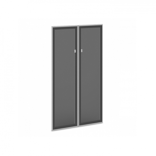 Двери стеклянные, распашные, средние. Фасады в алюминиевом профиле толщиной 20 мм. Толщина стекла - 4 мм. Высота - 1406 мм, крепление на 3-х петлях.