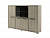 Секции 2, 3, 4 - стеллаж с 4 полками. Две полки с возможностью установки на разную высоту. Две двери глухие. В двух секциях в нижней части двери ЛДСП, сверху стеклянные двери.